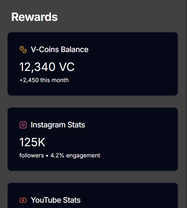 You earn rewards by using the platform – sending invoices, completing goals, or spending with partners. Your social reach and platform activity can unlock bonus experiences.