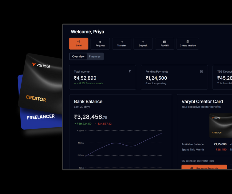 Creators additionally benefit from brand deal tracking, social integrations, and content-related payouts. Freelancers use Variabl to manage client invoices, tax obligations, and cash flow predictability – all in one AI-first platform.